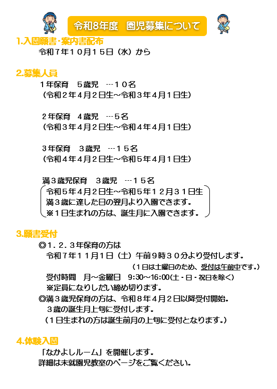 - R7.10.15 令和8年度 園児募集について掲載しました。