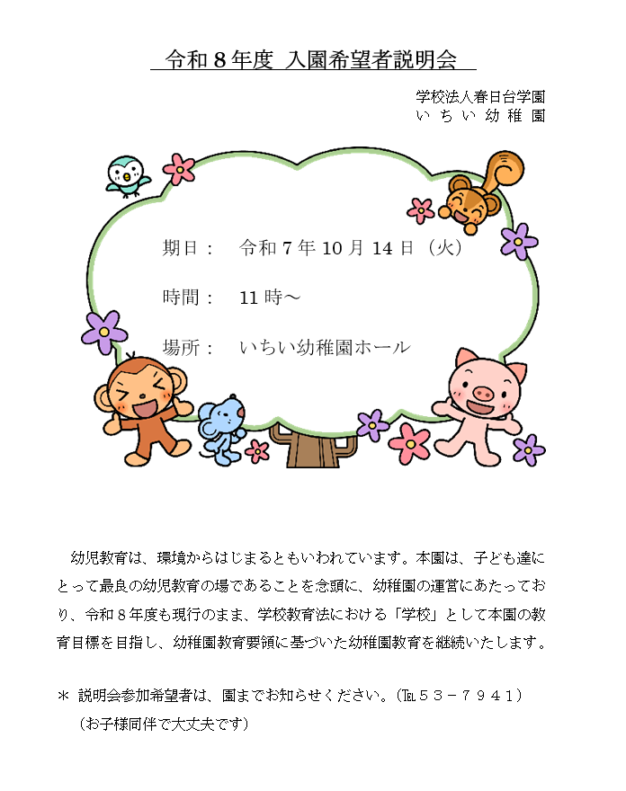 - R7.10.2 【未就園児教室】入園希望者説明会について掲載いたしました。